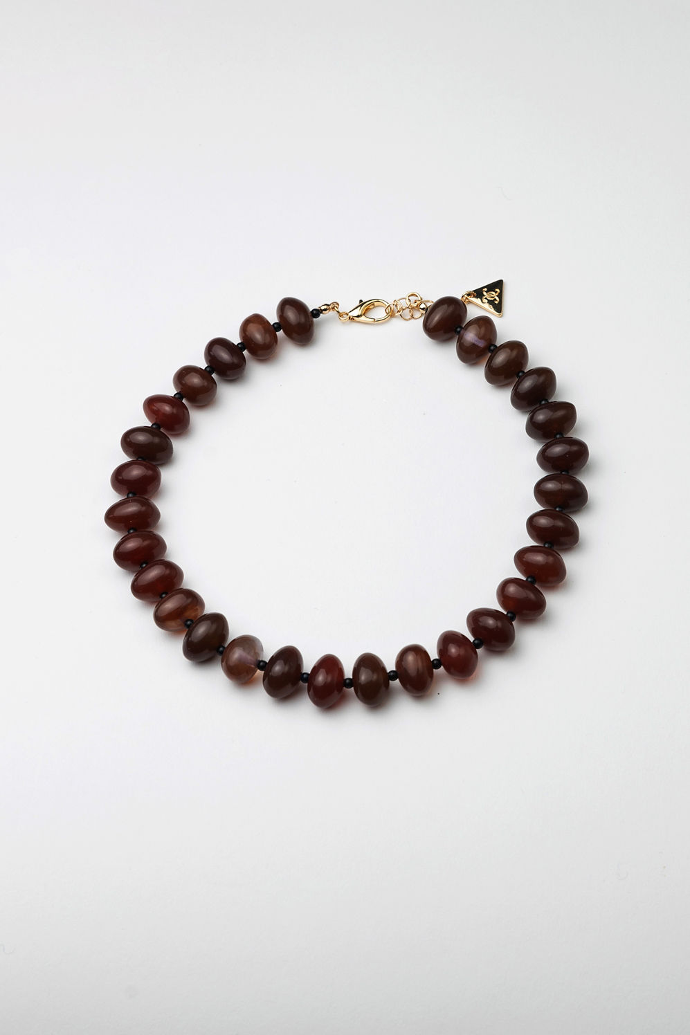 Arta-perlekjedet er et moderne smykke med ovale perler og en gyllen dusk i låsen som gir kjedet et eksklusivt preg.