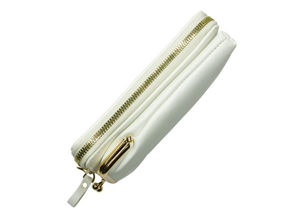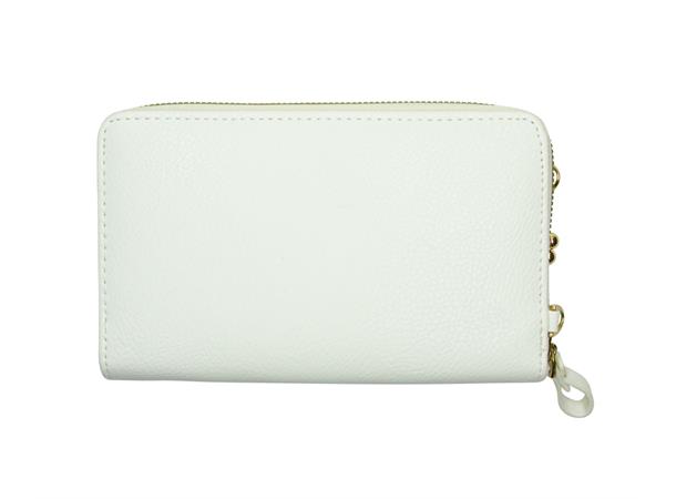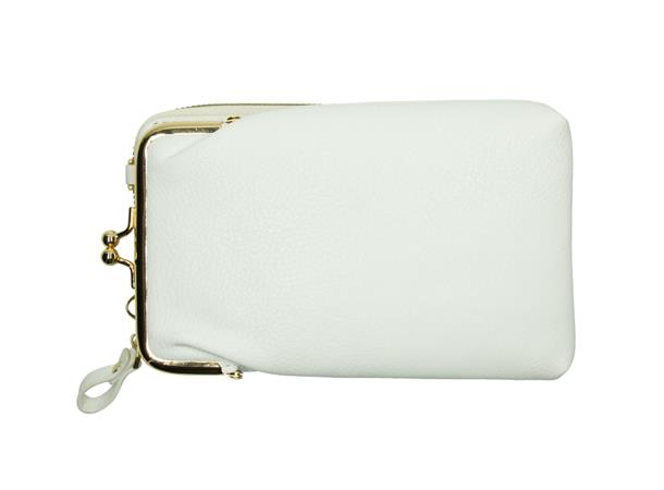 Hvit mobilveske og lommebok. Her er det god plass til de største mobilene. Lang justerbar stropp følger med, den bæres crossover.