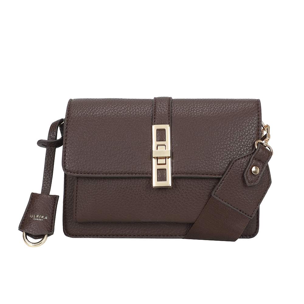 Bæres i en justerbar og avtagbar crossbodyreim, i nylon og syntet.